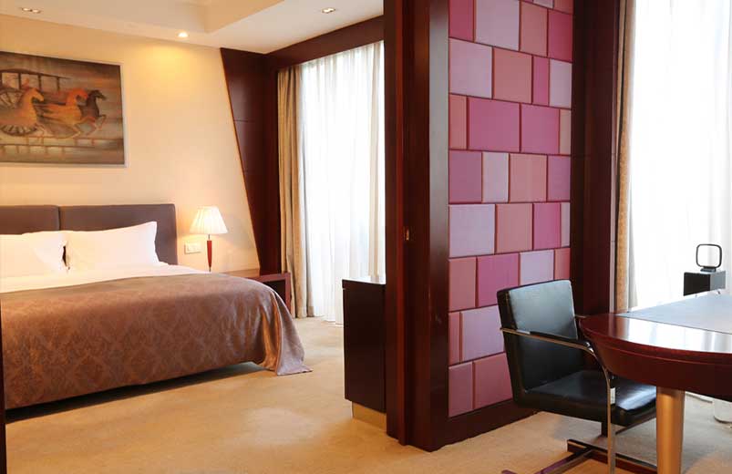 饭店高雅的客房巧妙的将汉文化融入其中,并突出了房间的温馨舒适。饭店拥有豪华舒适的各类客房共360间(套),其中豪华套房60套,入住酒店的客人可免费享用超大的室内泳池及先进的健身设备。房间内配备齐全,高水准的客房用品及高速宽带上网,必能为您的入住带来别样的体验。另外酒店客房充分利用自然光照,可一览鼓楼、后海、景山、故宫、国家大剧院等多处景观。